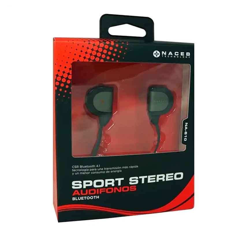 AUDIFONOS NACEB BLUETOOTH SPORT INTRAURICULARES 75CM USB CSR 4.1 NA 610