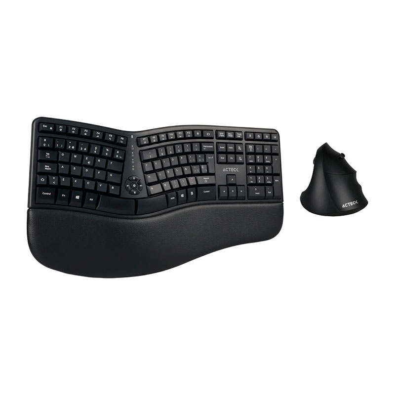 KIT TECLADO Y MOUSE VIRTUOS FITT MK770 INALAMBRICO ERGONOMICO RECARGABLE USB C COLOR NEGRO AC 936248