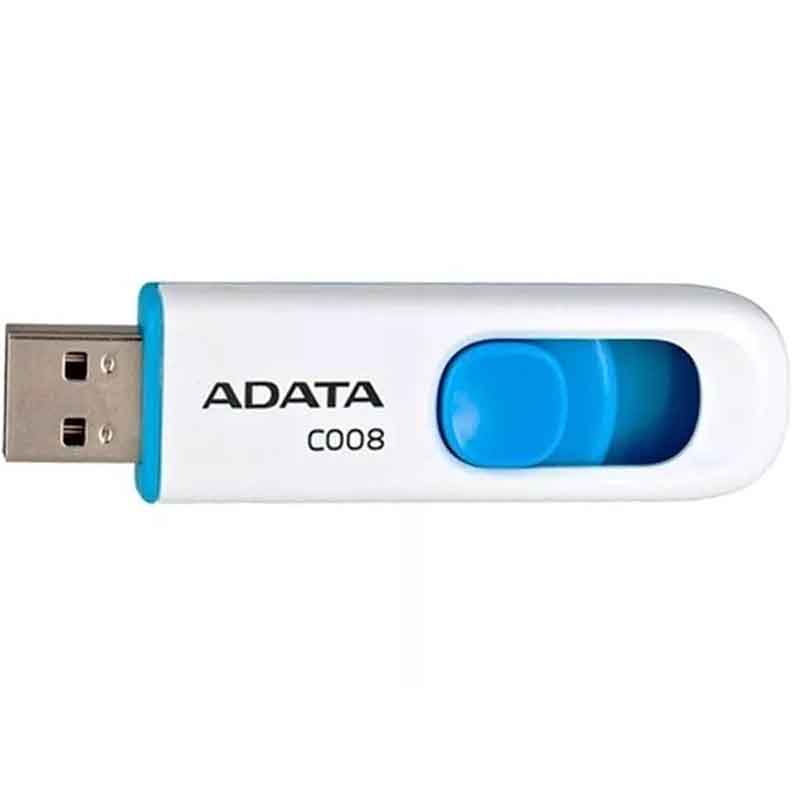 MEMORIA USB ADATA 64GB 2.0 RETRACTIL C008 BLANCO Y AZUL AC008 64G RWE