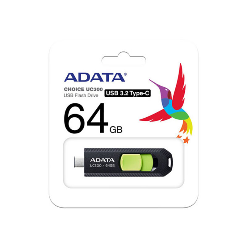 MEMORIA USB ADATA 64GB 3.2 RETRACTIL TIPO C NEGRO VERDE ACHO UC300 64GRBK GN