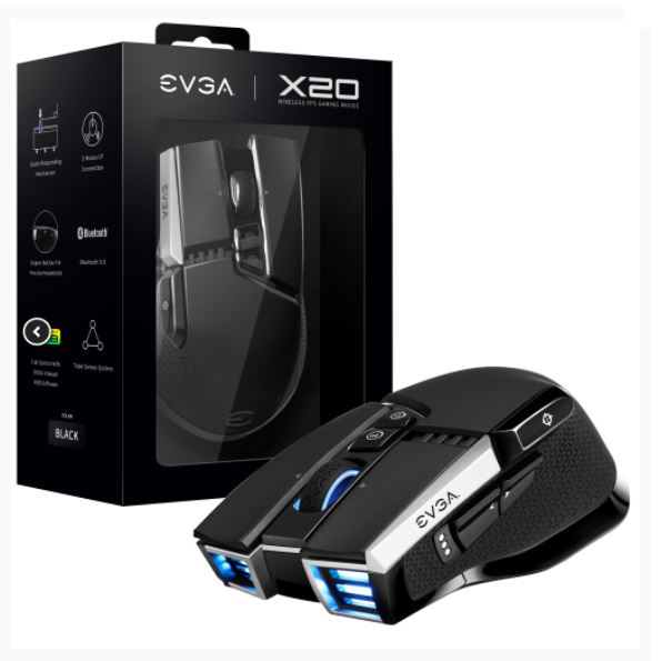 MOUSE EVGA X20 GAMING INALAMBRICO NEGRO PERSONALIZABLE 16000 PPP 5 PERFILES 10 BOTONES ERGONOMICO 903 T1 20BK KR